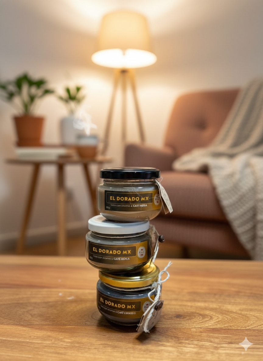 Tres velas artesanales con aromas inspirados en el café. Ideal para ambientar espacios con notas cálidas, dulces y reconfortantes durante toda la temporada navideña.