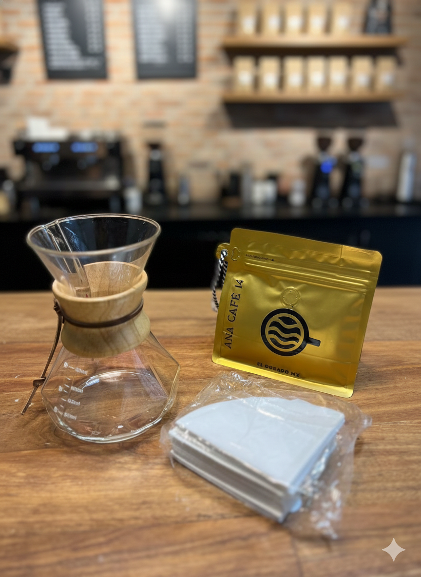 1 cafetera tipo Chemex con capacidad de 600ml