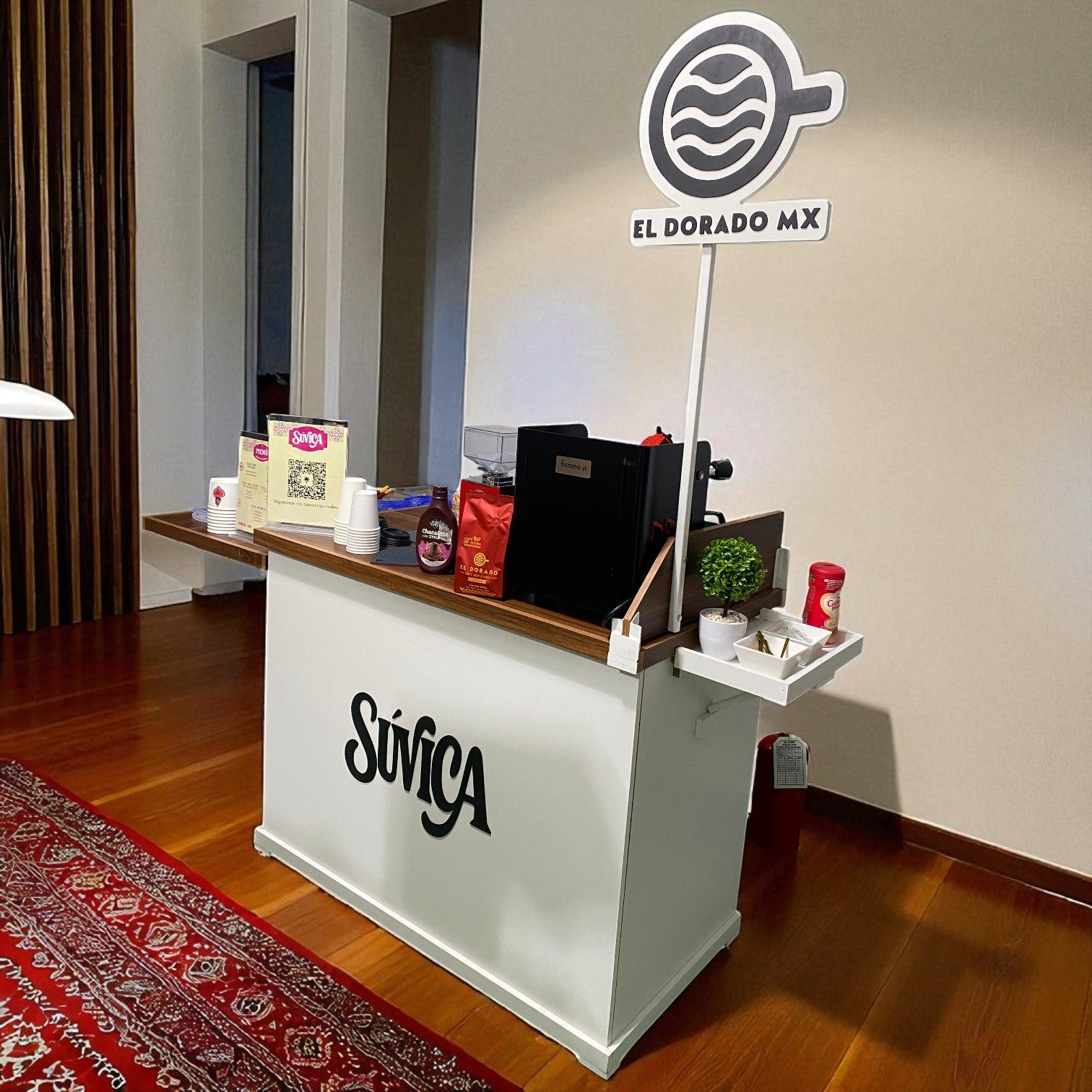 La opción más versátil. Tus invitados podrán elegir entre bebidas calientes como Latte, Capuchino y Moka, o refrescarse con versiones frías como Iced Latte, Iced Caramel Macchiato o Moka frío. Todo preparado al instante con café de especialidad de El Dorado.